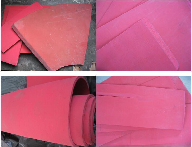 重量輕、彈性好、耐流體耐腐蝕、使用壽命長。耐磨值已大大超過了合金鋼和聚胺酯。耐磨性能,回彈性能極好,而且不粘物料,還有減震和降噪音的性能。用橡膠板制成的橡膠應用在您的設備上,可使您的設備提高工作效率,大大減少維修次數(shù),輕松管理設備,使用設備。